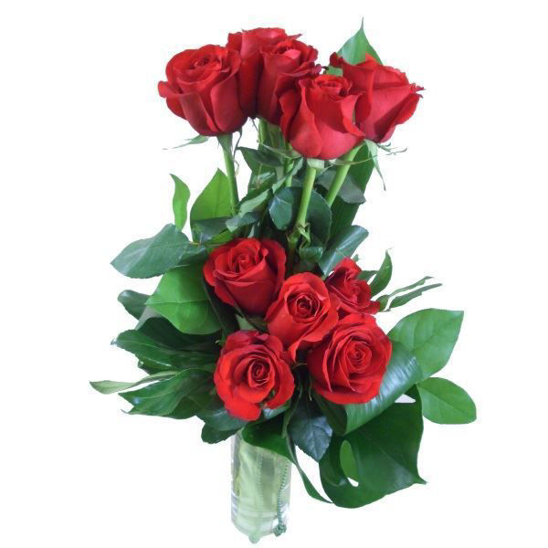 Neste dia dos namorados, surpreenda o amor, com uma entrega de flores no local de trabalho ou em casa. Ramo de 10 rosas vermelhas, verdes variados, cordão e fita, jarra não incluída.