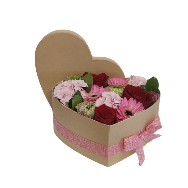 Uma caixinha em formato coração decorada de forma a tentar representar um bocadinho do amor das nossas mães.