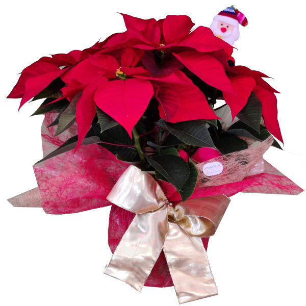 Poinsettia (estrela-de-natal) decorada com um simpático Pai Natal.